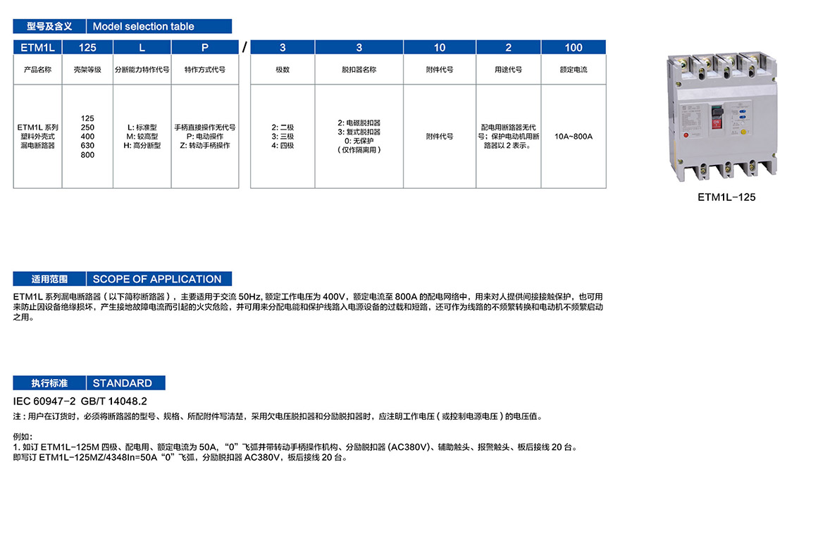 ETM1L系列塑料外殼式漏電斷路器